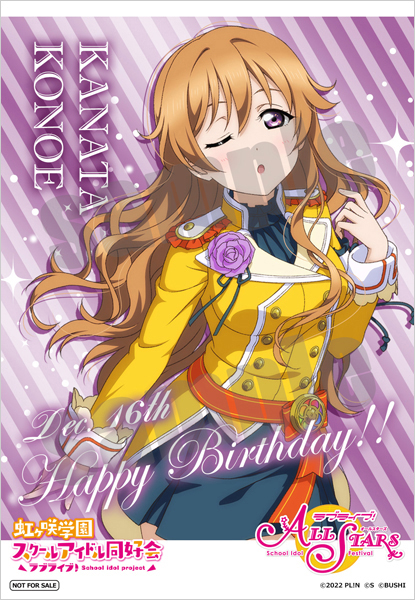 以下の対象期間中に、「ラブライブ!虹ヶ咲学園スクールアイドル同好会×サンリオキャラクターズ」の対象商品を含む1注文につき、該当メンバーのバースデーブロマイドを1枚お付けいたします。