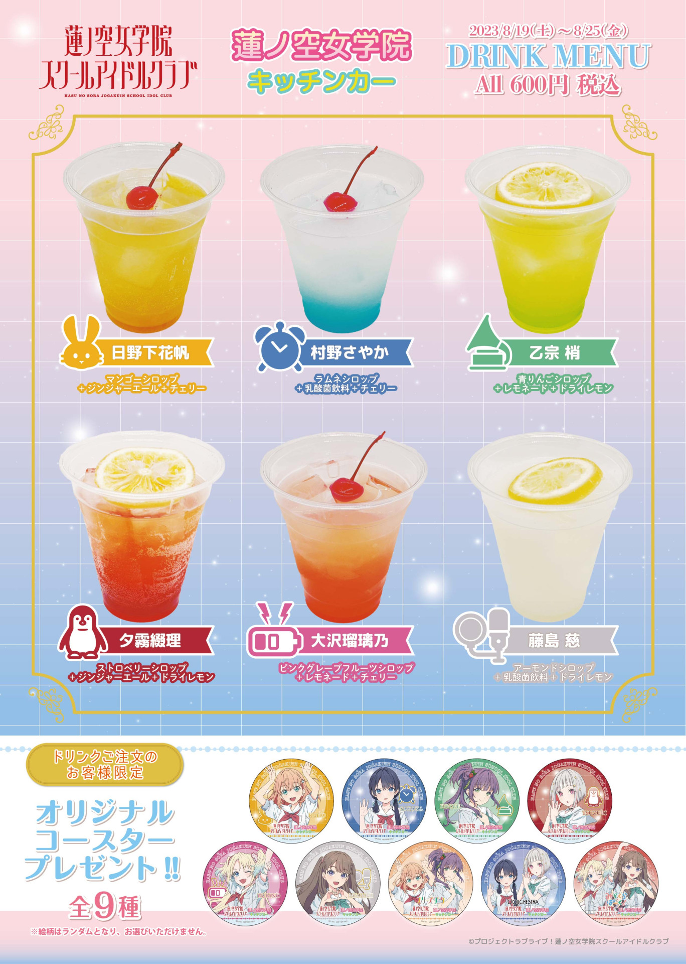 ここでしか味わえないドリンクの販売や、オリジナルコースターの配布もございます♪