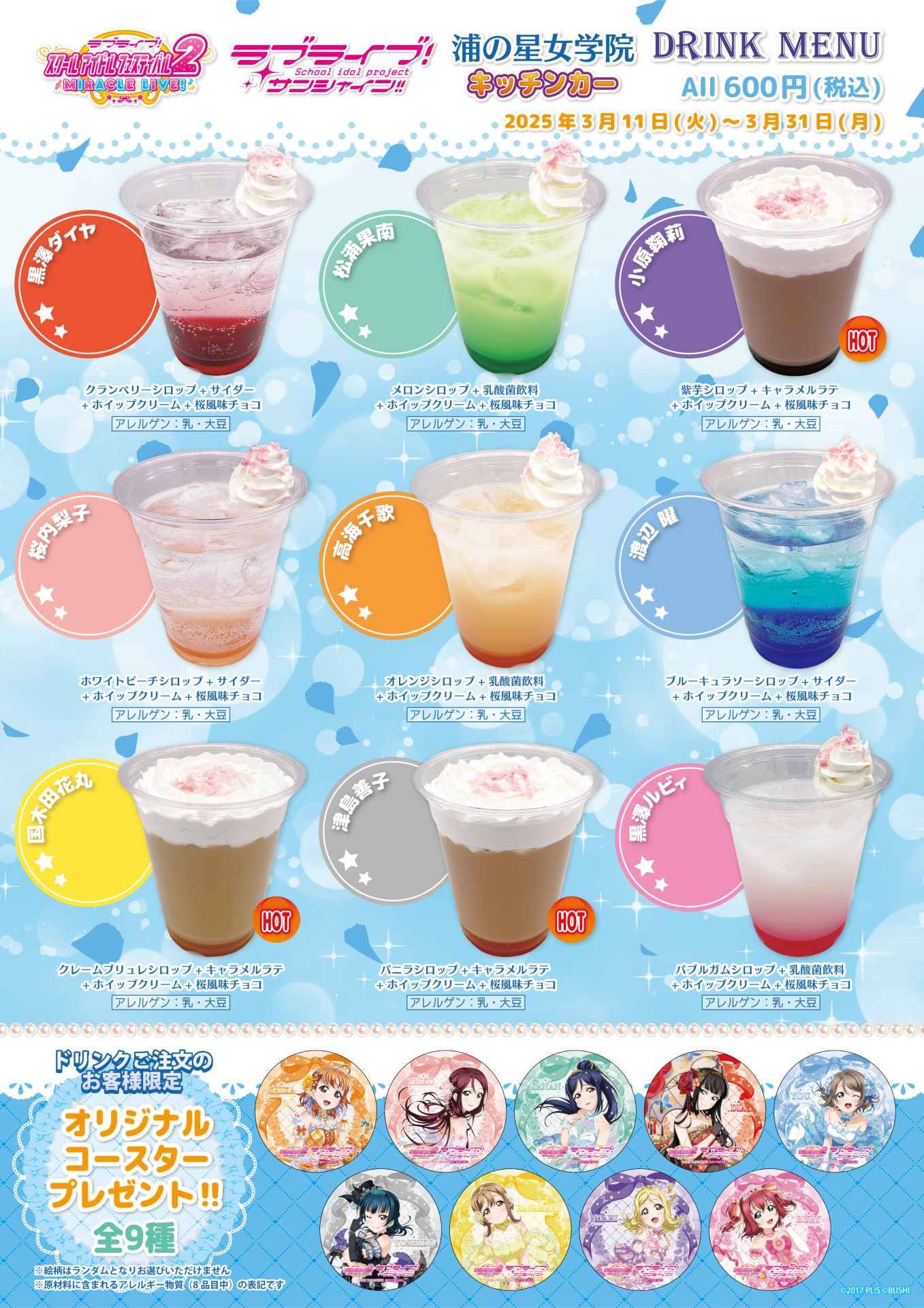 『浦の星女学院キッチンカー』より、通常ドリンク発売のお知らせです!