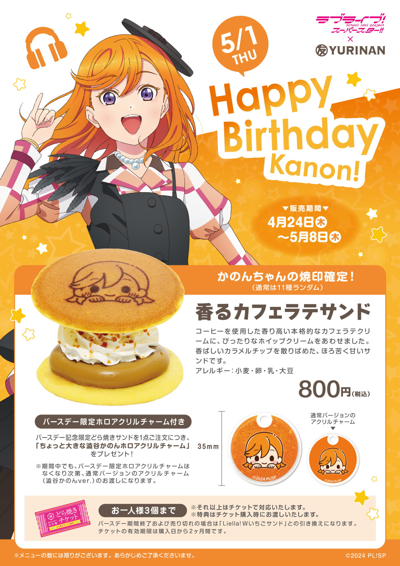YURINAN-ゆうりんあん-にて『澁谷かのん』のバースデーを記念した期間限定メニュー「香るカフェラテサンド」の販売が決定いたしました!