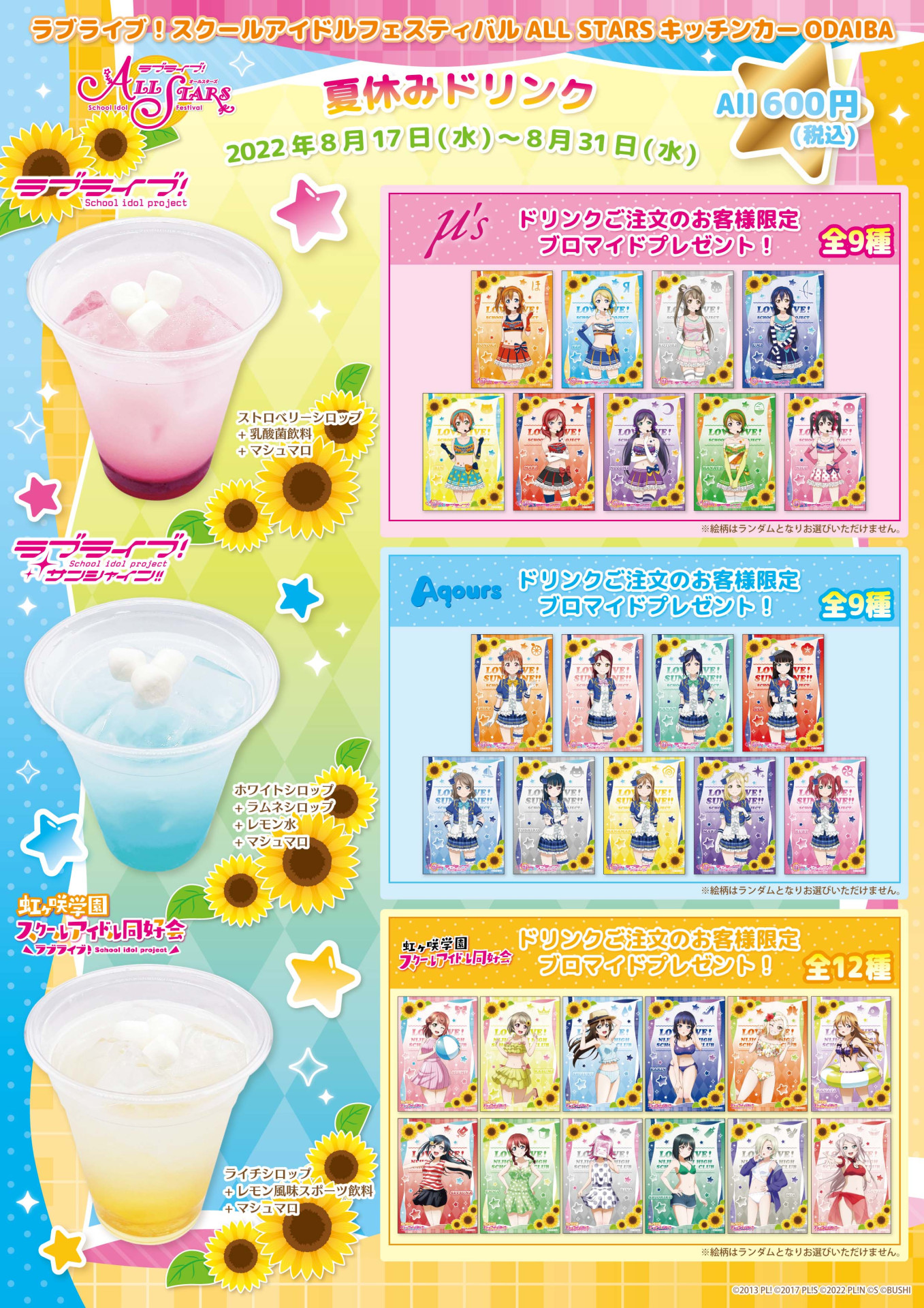 「ラブライブ!スクールアイドルフェスティバル ALL STARS キッチンカー at ODAIBAデックス東京ビーチ」より特別ドリンク販売のお知らせ